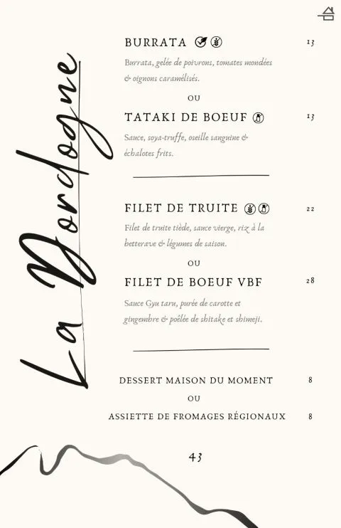 "Hardy" and refined, elaborated over traditions, the cooking of the Corrèze has a good taste of the terroir. A terroir that our chef has pleasure of displaying by elaborating beautiful generous dishes.